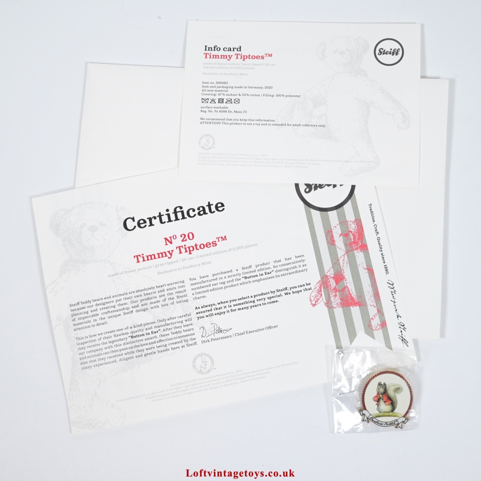 from 2020, limited edition of no 20 of 5,000, in Mint condition, with swing label, certificate, pin badge and a Steiff box