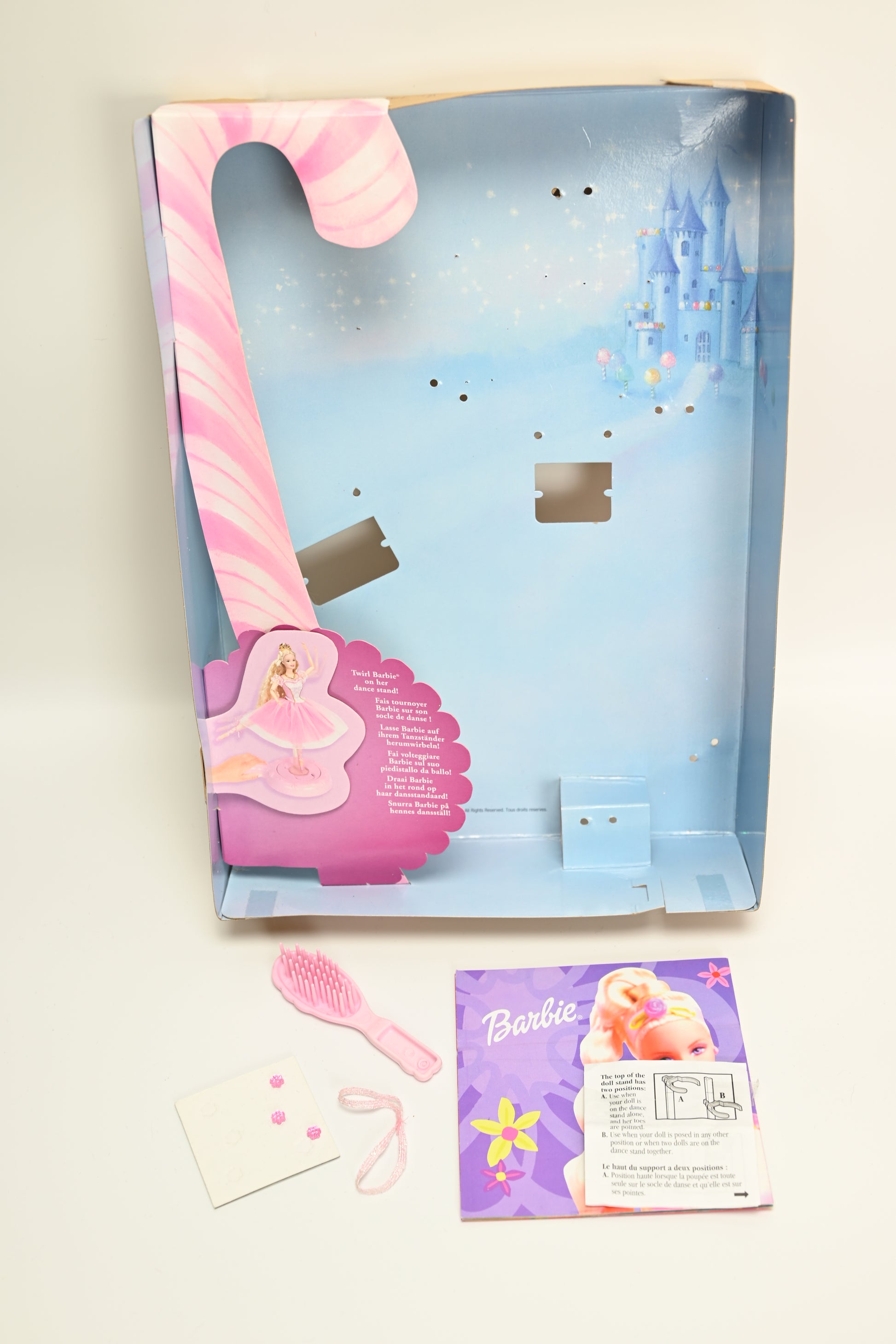 comes with twirl stand, accessories and product leaflet in original box. Doll is in Excellent condition. Box is in Good condition with tear to the top of the box and writing on the inside (this isn't visible when closed) see pics. Made by Mattel, approx 12" tall.