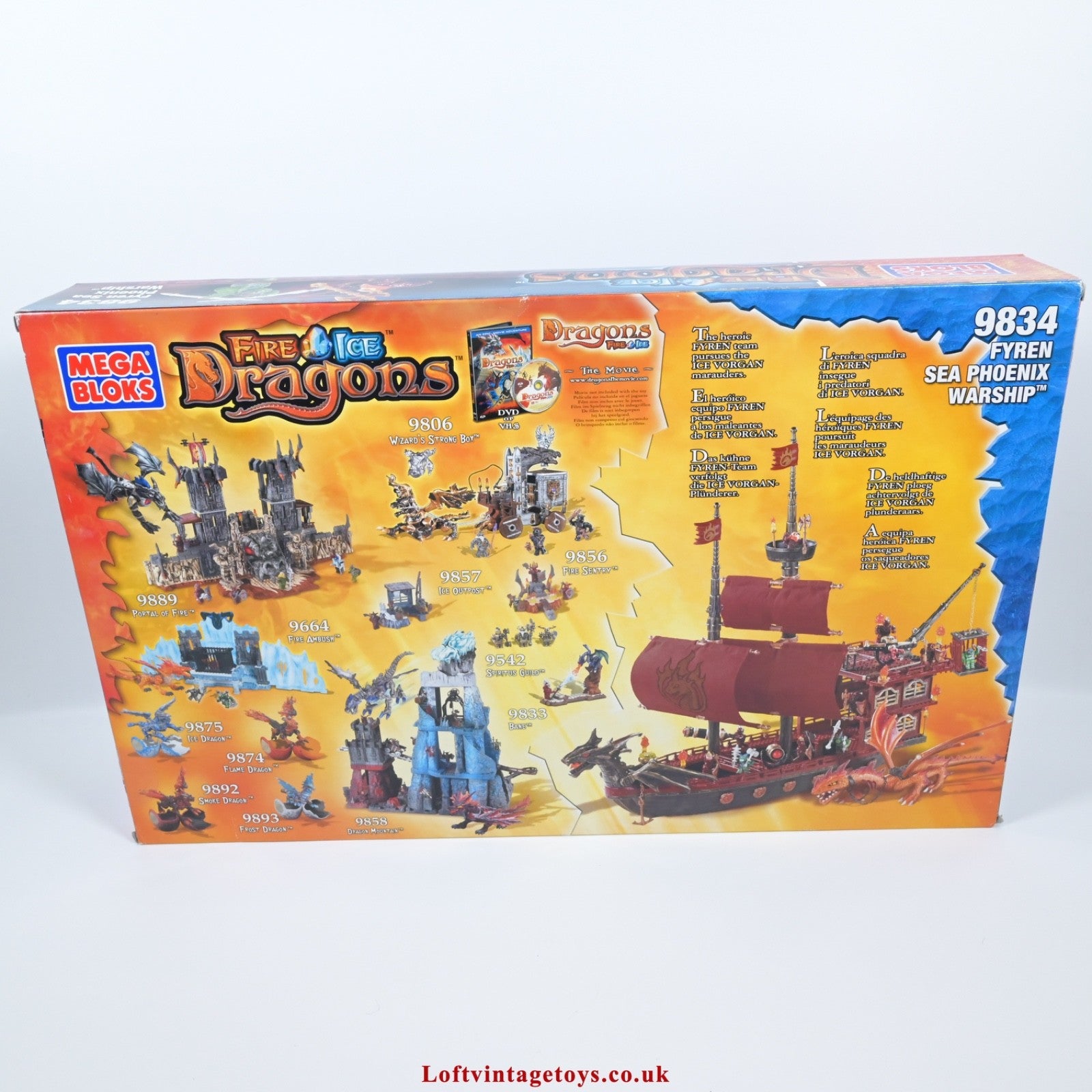 Sealed scarce Mega Bloks 9834 Fyren Sea Phoenix Warship Dragons Fire Ice Set, Excellent condition sealed box with some minor wear (light creasing/edge and corner wear - please see pics)