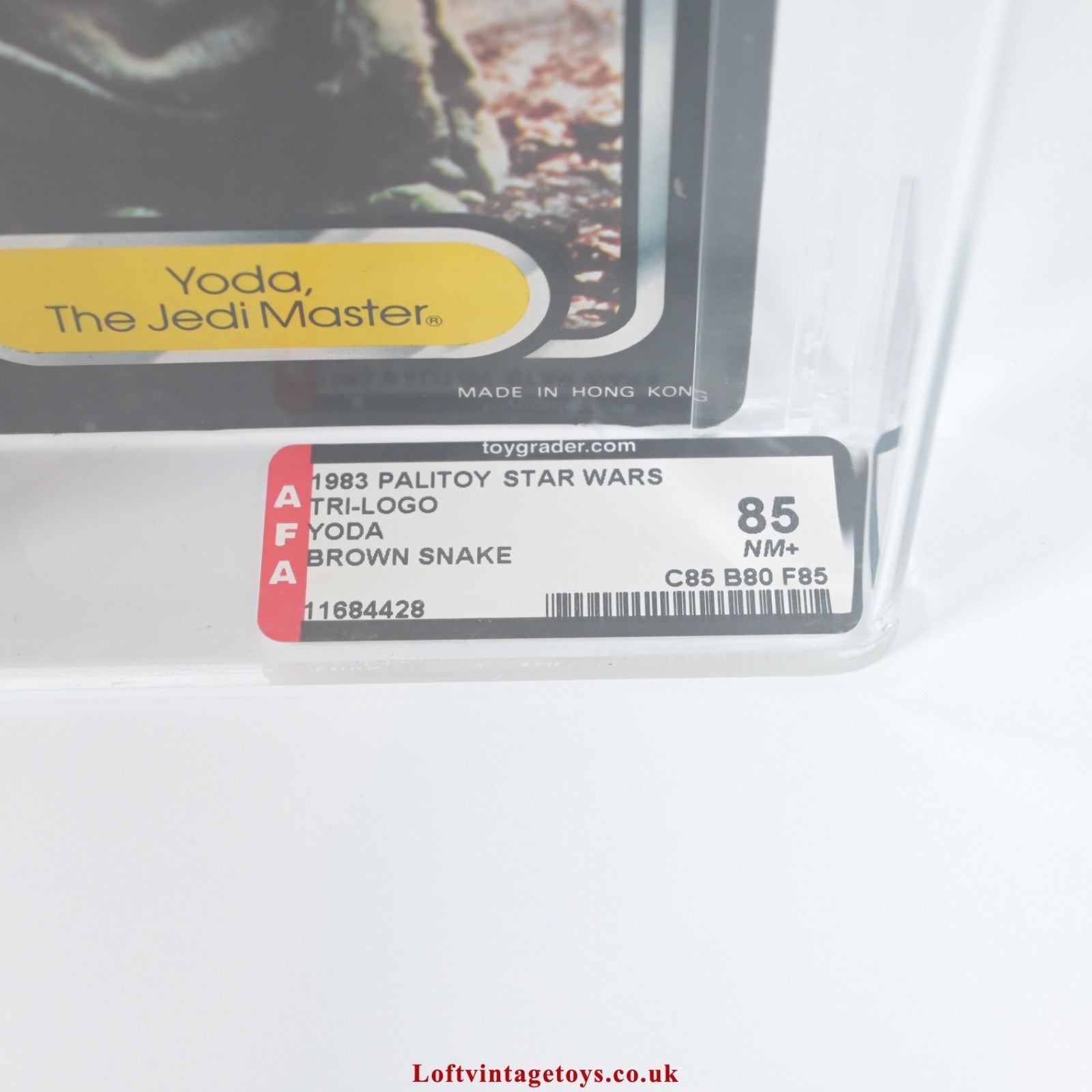 Palitoy Vintage Star Wars ROTJ Tri-Logo Yoda (brown snake) AFA 85