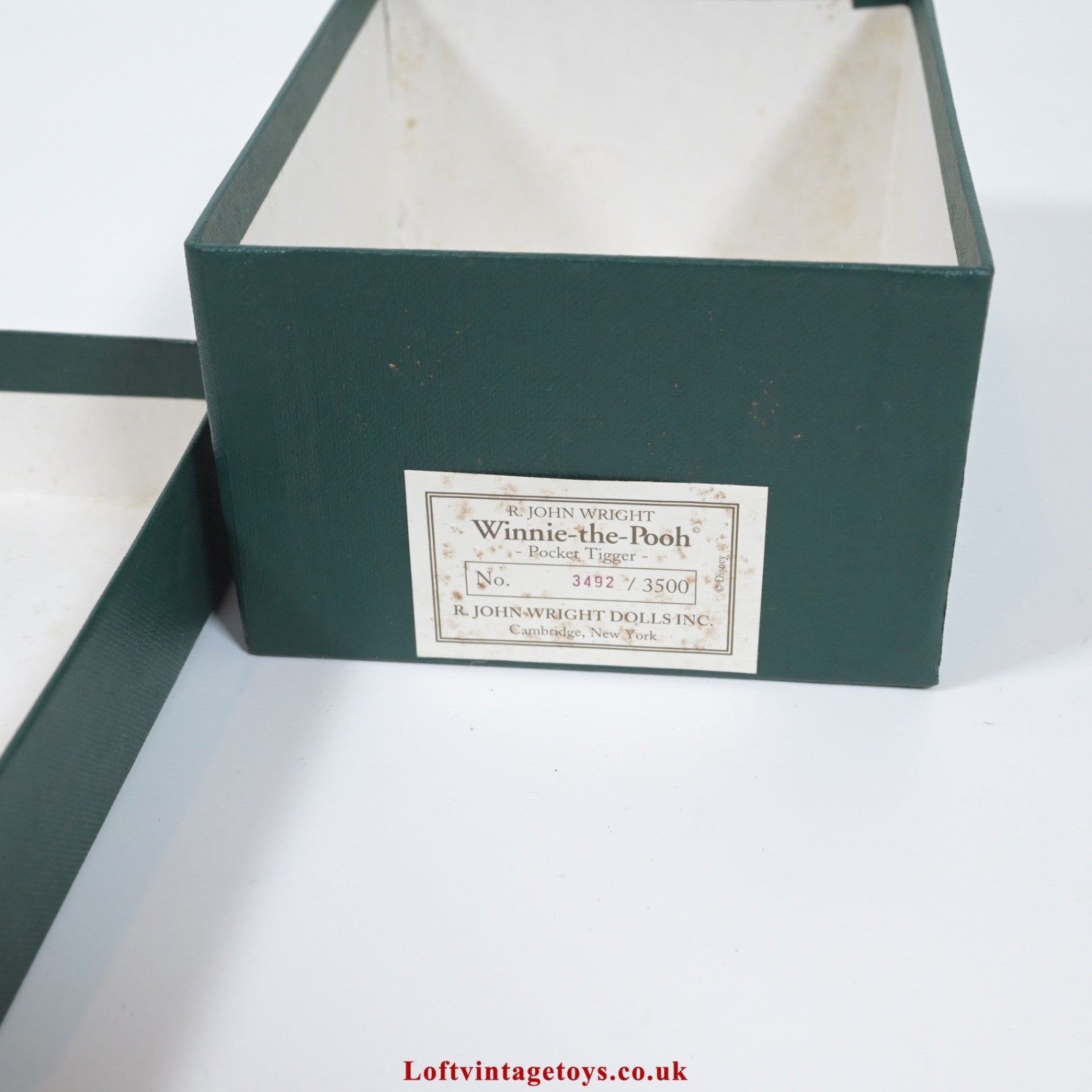 Limited edition of 100, signed by R John Wright, within regular pocket tigger edition box no. 3492 of 3500 (some foxing to box which is visible inside), commemorates the 25th Anniversary of Walt Disney World. 3.5", mohair plush, fully jointed, in Excellent condition with original booklet tag (rusty Staple) and COA.