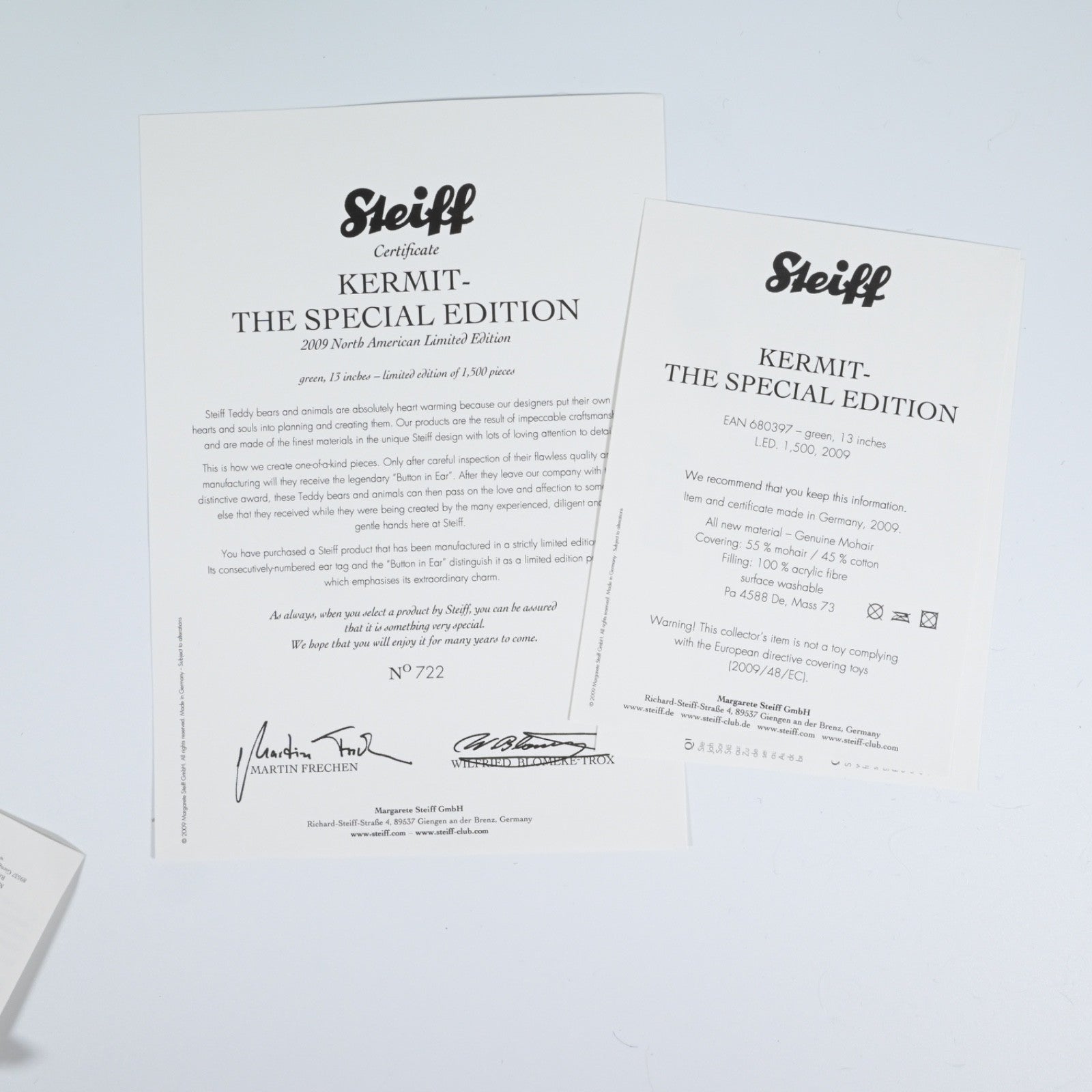 Steiff Kermit The Frog Special Edition, Ltd Edition - Hard to Find - 680397