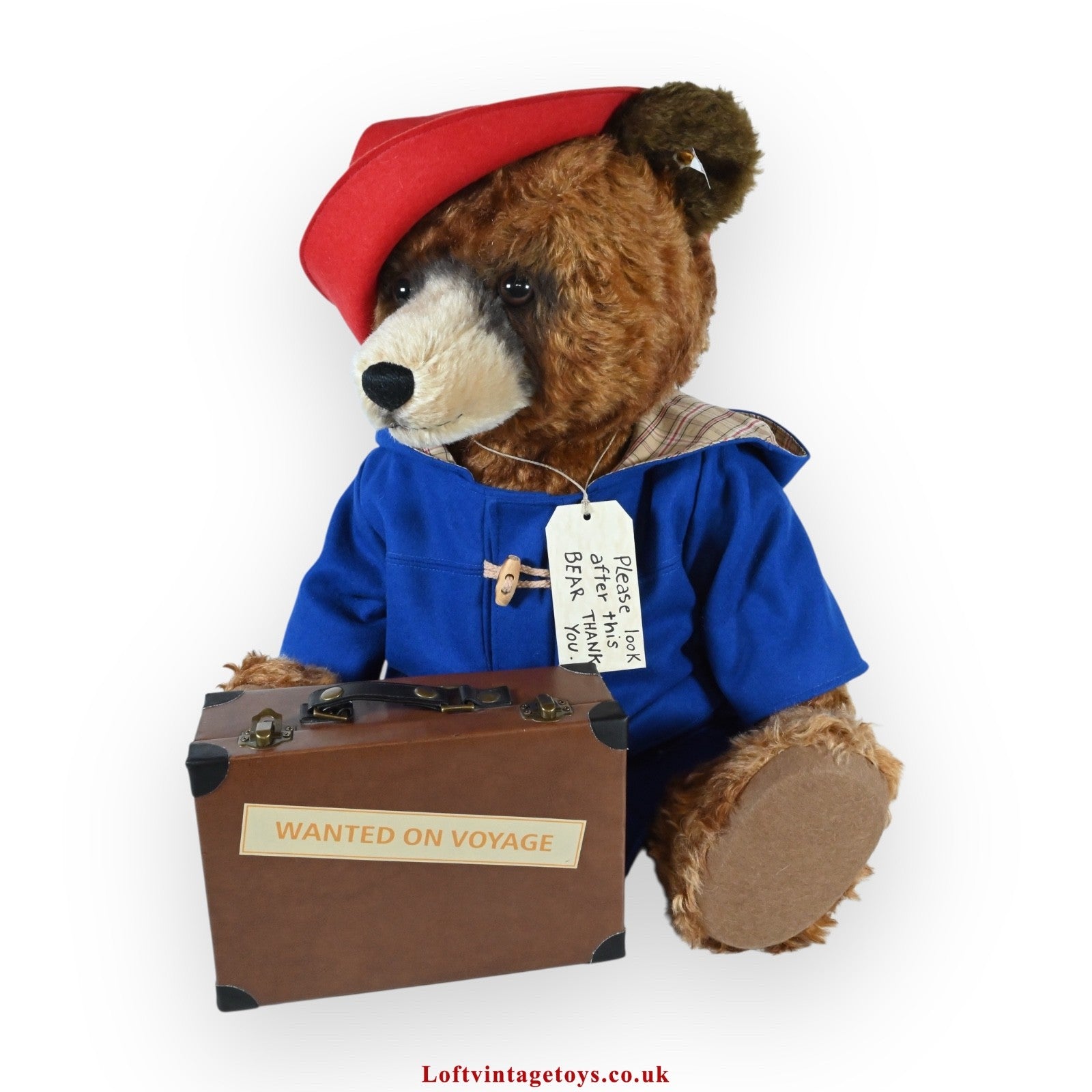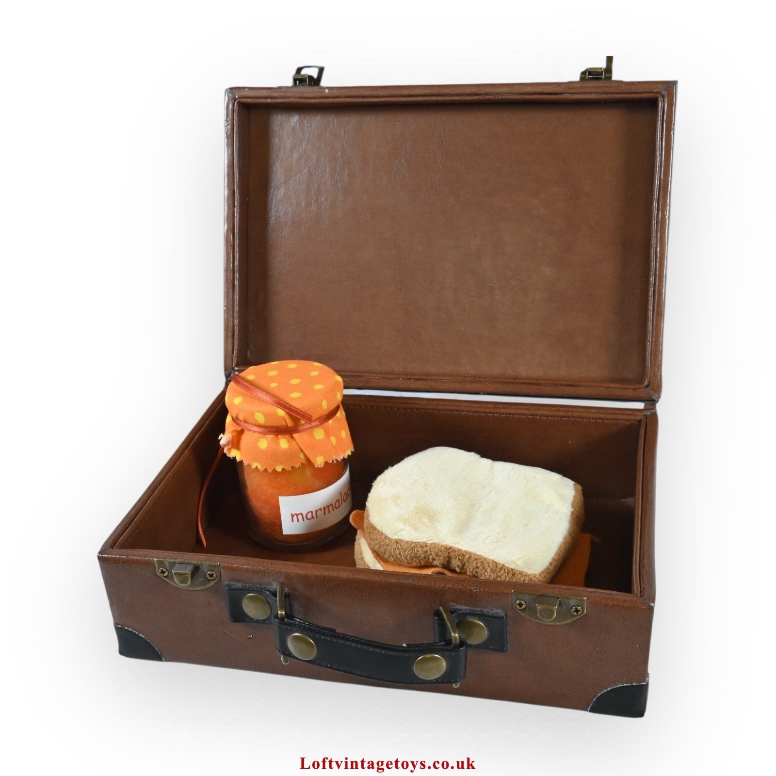 exclusive to UK, Ireland and USA, limited edition of 500 pieces made, chestnut and blonde mohair, with suitcase containing is marmalade sandwich & jar, suitcase does have some small various ink/scratch/indentation marks - please see pics. Paddington is in Mint condition, with "PLEASE LOOK AFTER THIS BEAR" label, missing certificate and box.