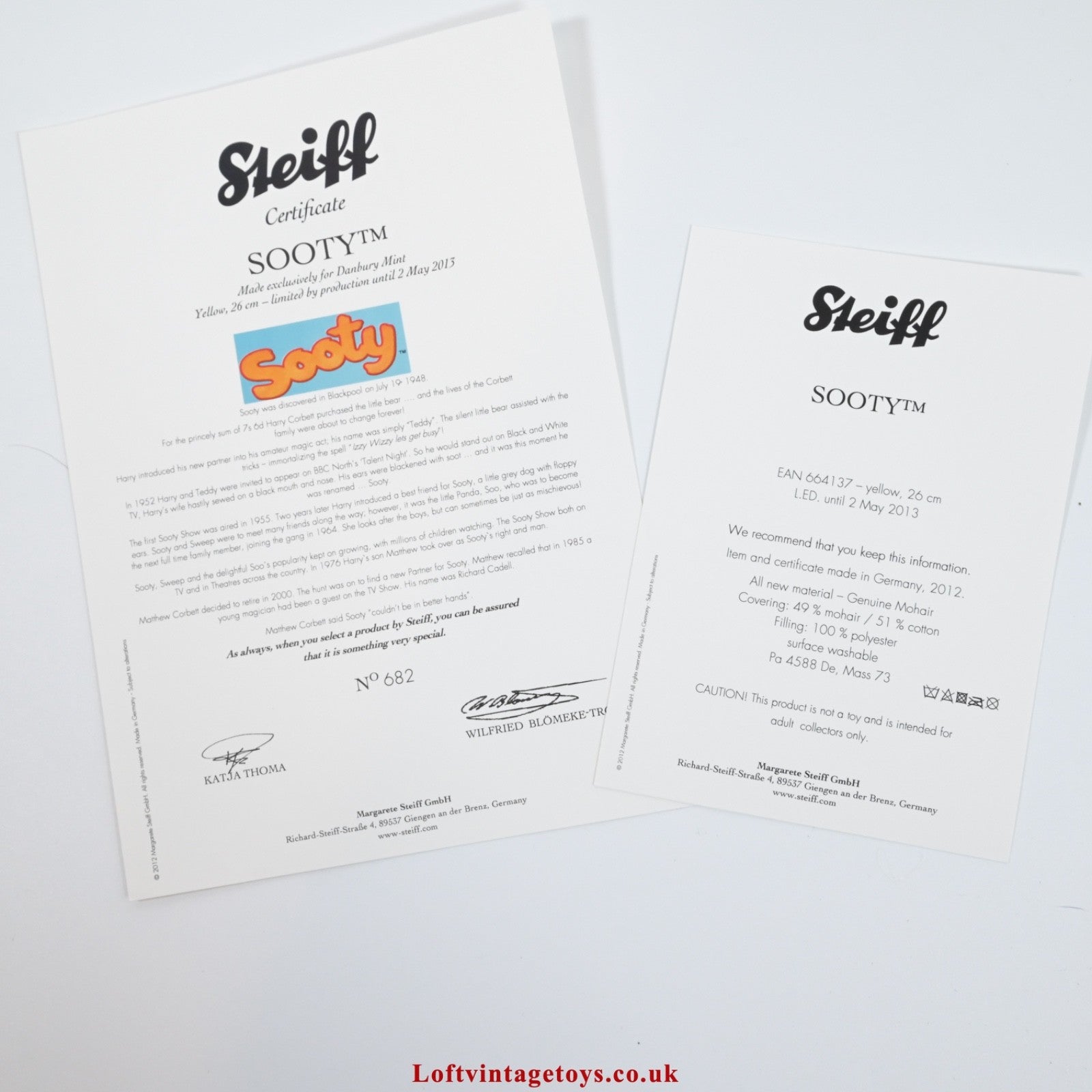 Steiff Sooty 60th Anniversary Teddy Bear - 664137, LE Production