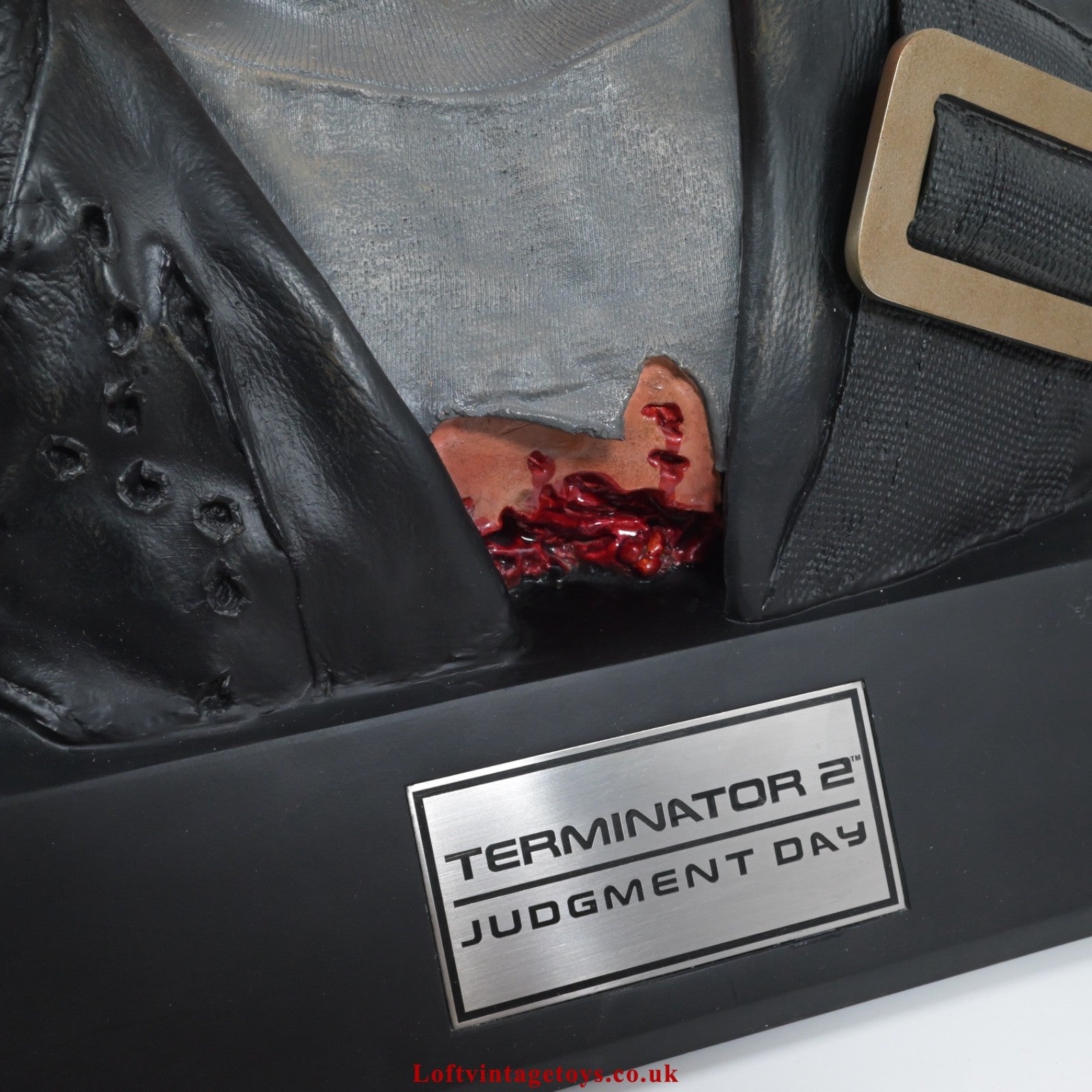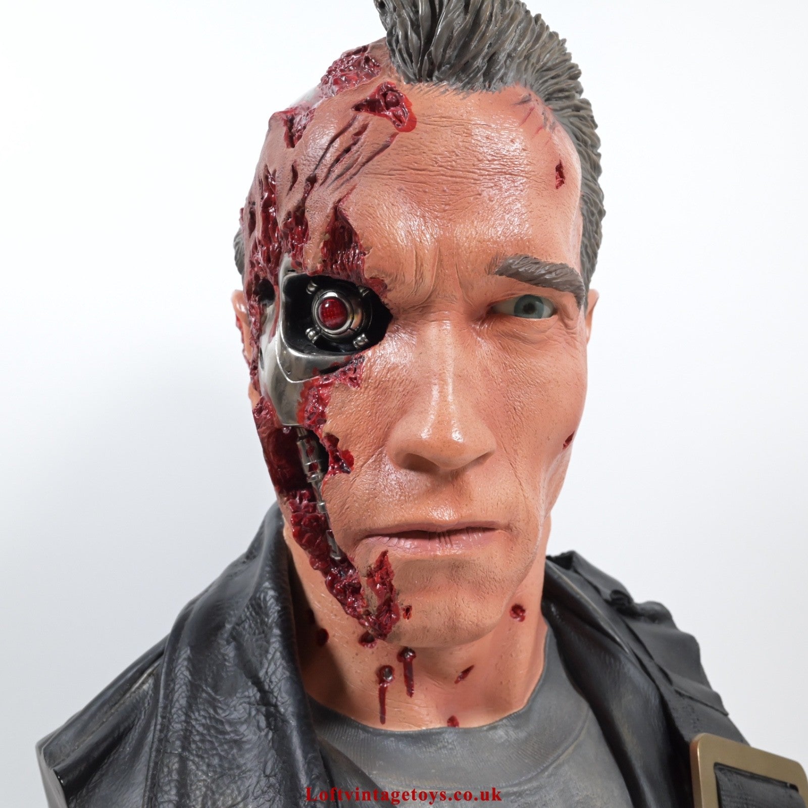 Terminator 2 : Sideshow Collectibles T-800 Life Size Bust, limited edition of only 750, In Good to Excellent condition with a good repair to the protruding jacket edge button (looks to have broken off and been reattached, please see last two pics), with working LED eye light feature. Housed within an Excellent box.